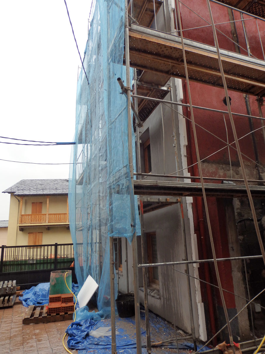 Rehabilitación integral de fachada mediante repicado total y revestimiento técnico, incluyendo la sustitución de carpintería exterior de aluminio de alta estanqueidad para condiciones extremas de montaña.