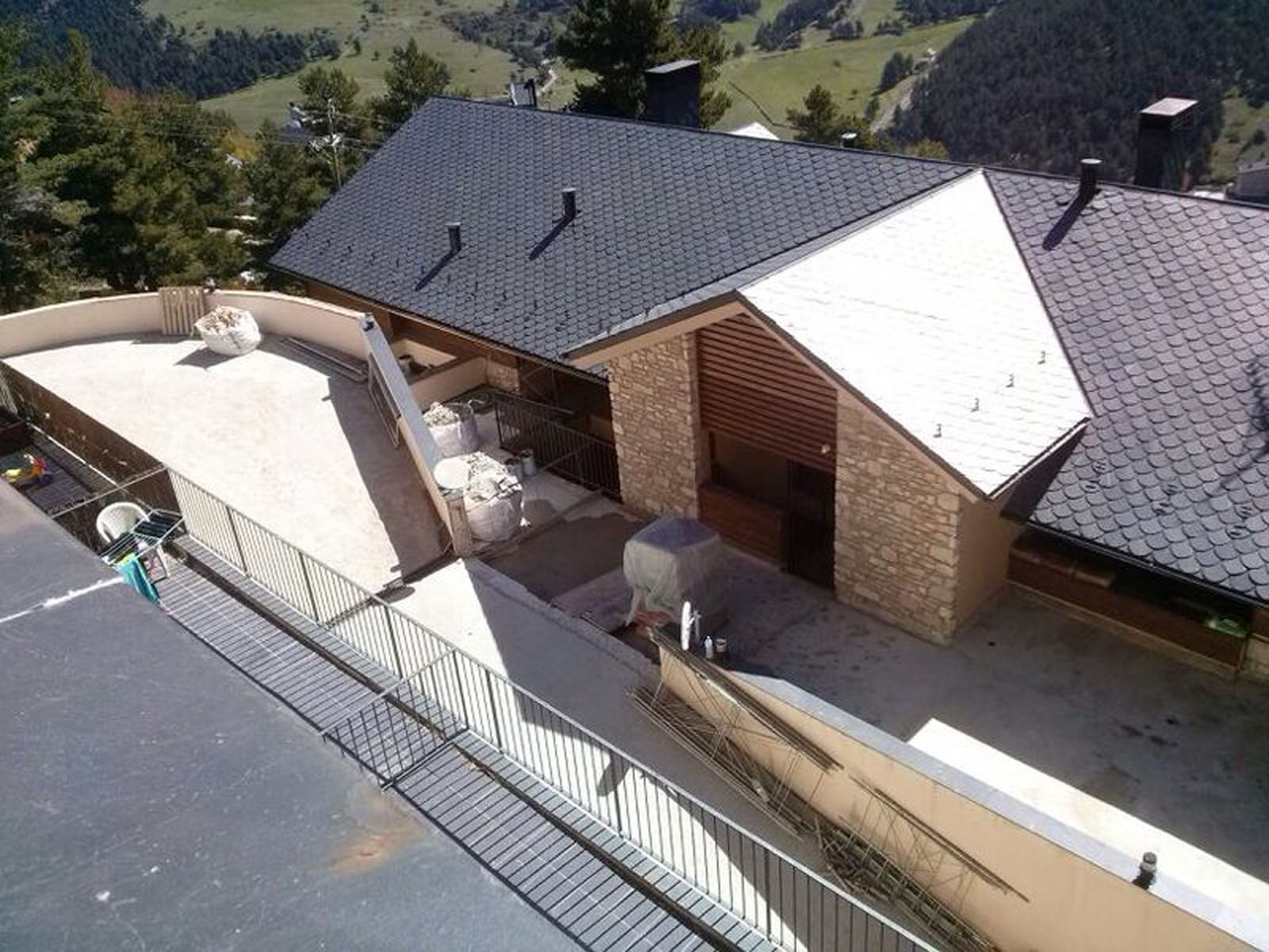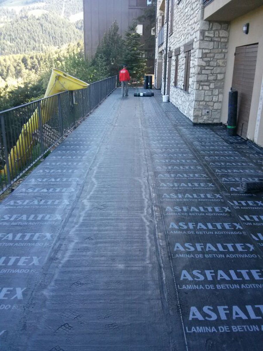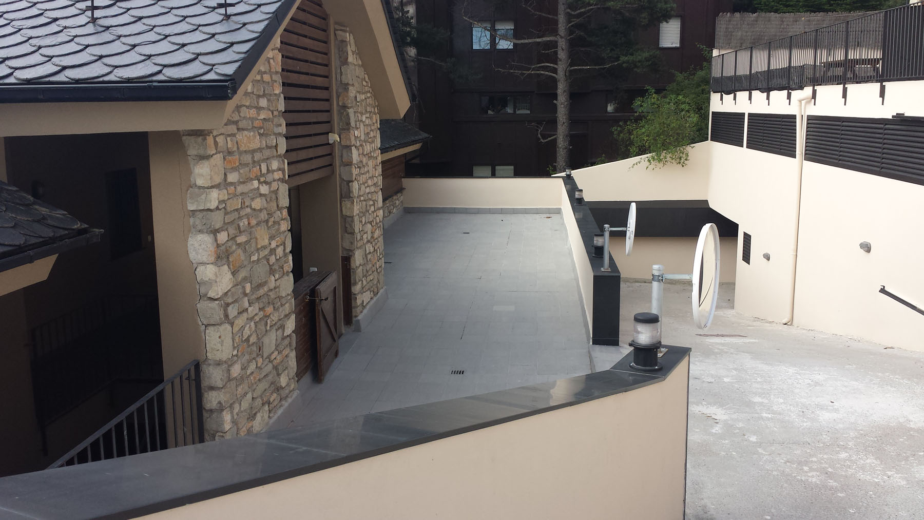 Rehabilitación integral de exteriores en La Molina, con sistemas avanzados de impermeabilización en terrazas, balcones y zonas comunes para garantizar la estanqueidad total frente a climas de nieve y frío extremo.